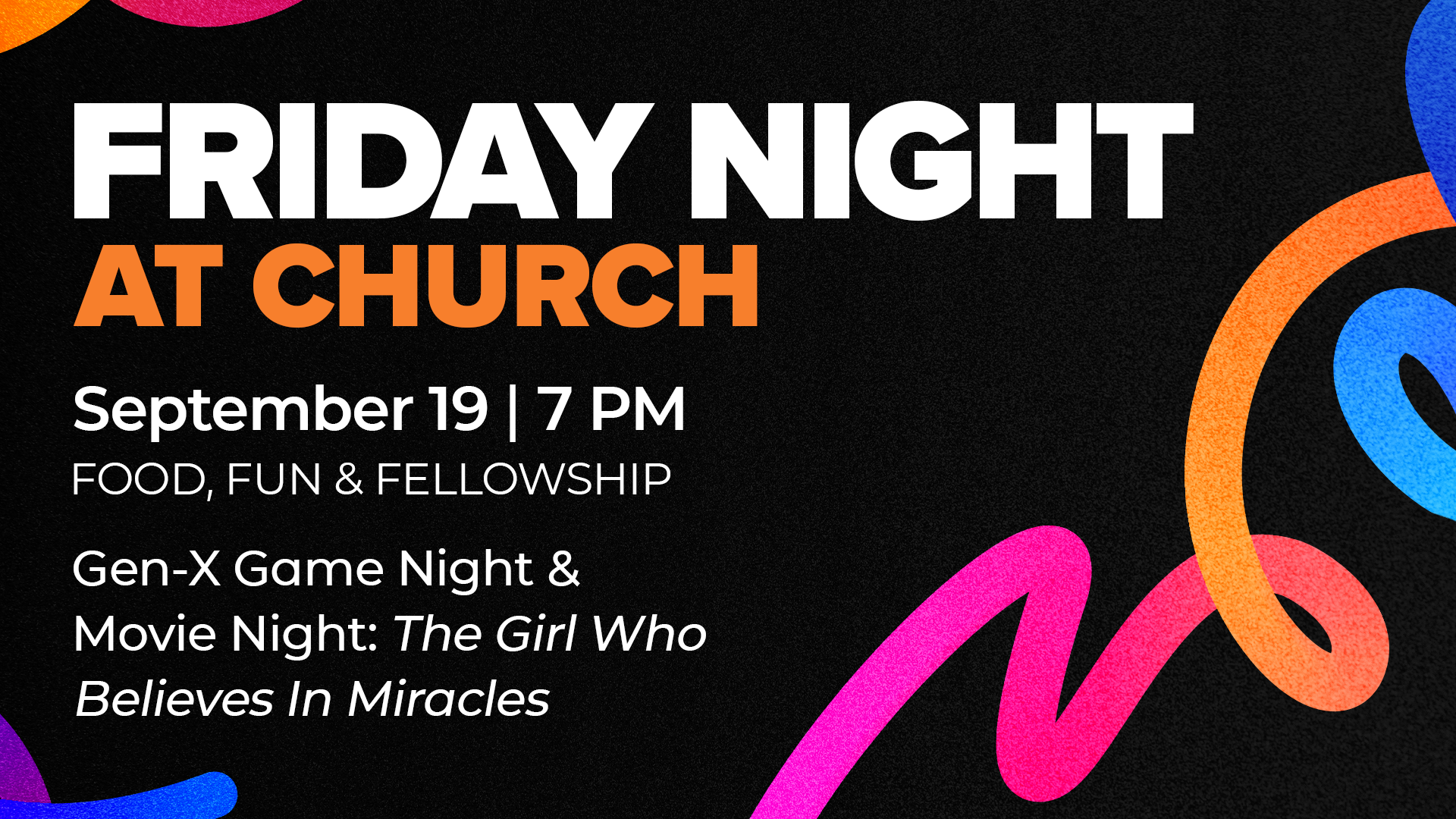 Join us for an evening of food, fun, and fellowship! We’ll kick things off with some lighthearted Gen X–themed games before gathering together to watch the inspiring film The Girl Who Believes in Miracles. Don’t miss this chance to relax, connect, and enjoy a meaningful night with friends and church family.